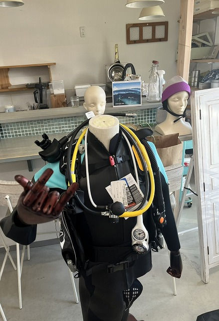 マネキンに器材やスーツを着せてみたり。